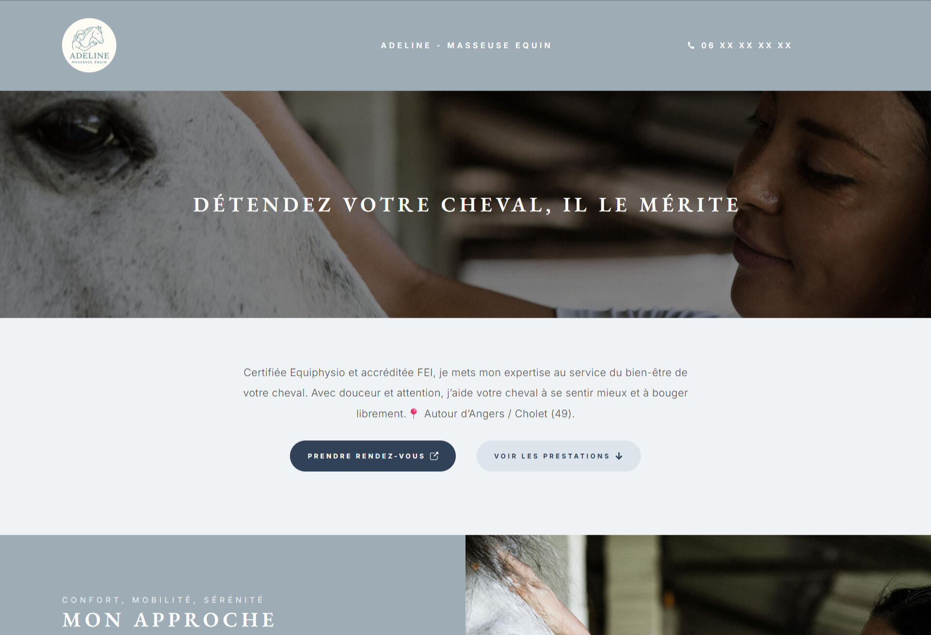 Carrd.co est l'outil parfait pour les professionnels équestres qui veulent une présence en ligne efficace sans se ruiner ni perdre de temps.Mes modèles sont spécialement conçus pour valoriser ton activité (masseur, comportementaliste, moniteur, coach, éleveur, maréchal-ferrant...) avec un design moderne et professionnel.